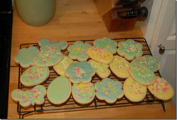 I managed to get one Easter-themed activity in: making cookies! (we never did get around to dyeing eggs, shame on us!) Wade helped (of course we are using this term loosely) me make them, and he even got to eat them thanks to our egg replacer! They were quite tasty indeed!